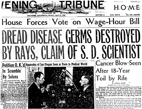 Diego Scientist, Royal Raymond Rife, Pt. Loma. He added that he had